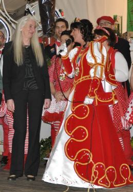 24:30 Uhr Wahnsinn, das Kölner Dreigestirn zog ins Zelt ein. Ich wollte es kaum glauben, sie nahmen mich mit auf die Bühne und der absolute Hammer. Ich erhielt als Auszeichnung die Prinzenspange von Prinz Holger I., überreicht durch die Jungfrau Alexandra.